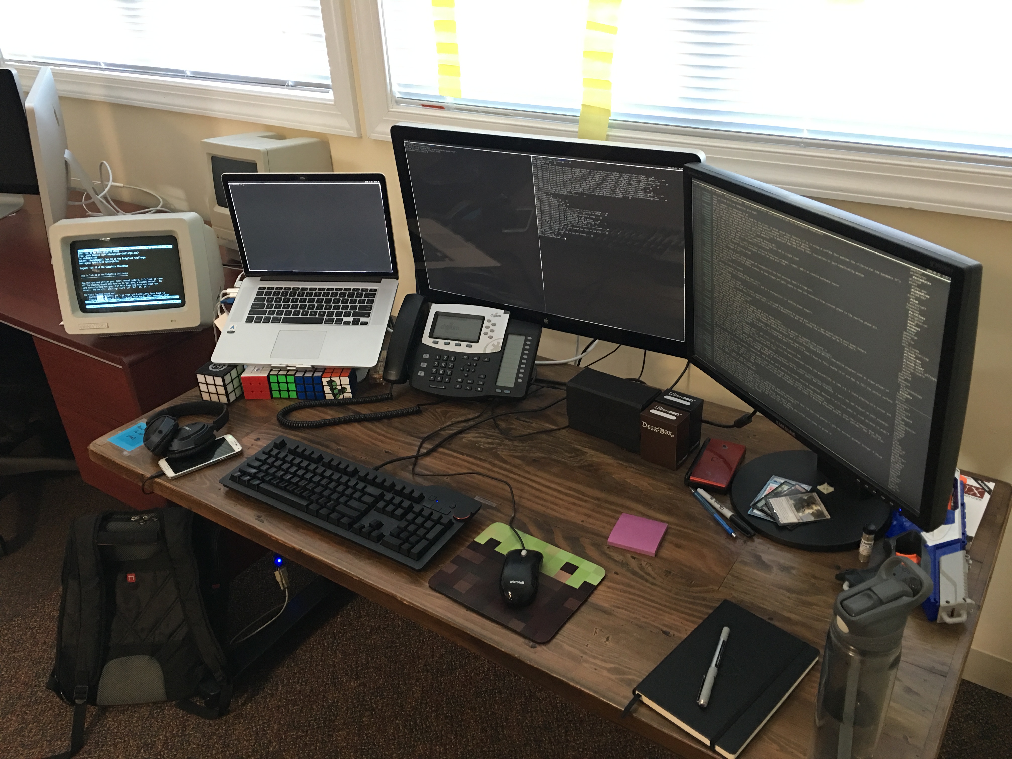The net of all of this is that now, I can boot up my machine, and when I log in, the VT220 starts up with tmux running and logged in as me. Then I went back to the old way of attaching to this tmux session with a terminal on my desktop session hidden in a corner of the screen. And now I could ditch the clunky old LK201 keyboard!