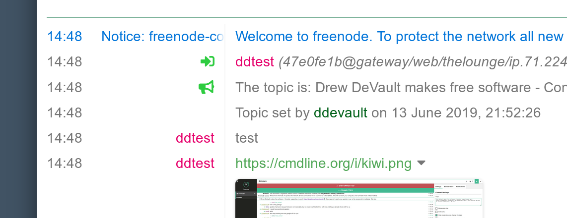Conservative improvements built on top of existing IRC norms, such as The Lounge, are much better. Most people post images on IRC as URLs, which clients can do a quick HEAD request against and embed if the mimetype is appropriate: