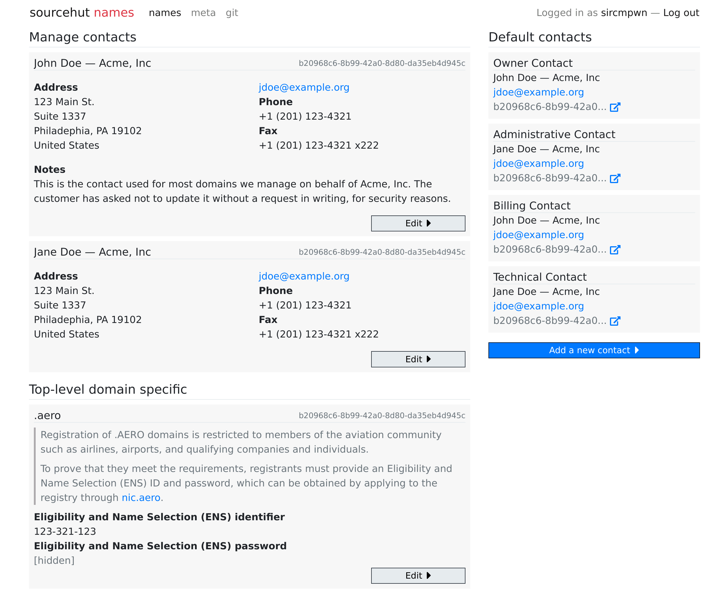 In SourceHut news, I focused mainly on two workstreams: single-sign-on and names.sr.ht, the upcoming DNS and domain registration service. The first finally fixes the problems with login across *.sr.ht, and now logging in once will log you in everywhere. Other issues with internal OAuth keys expiring have been fixed alongside these changes, and I’ve implemented a lot of improvements to the billing system as well. All of these should address some inconveniences which have been frustrating users for a while now. As for names.sr.ht, let’s just share another teaser screenshot: